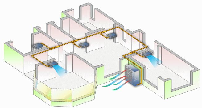 1、滋生細(xì)菌,傳染疾病:由于風(fēng)道通過(guò)出風(fēng)口、回風(fēng)口與室內(nèi)形成相對(duì)封閉空間,風(fēng)道內(nèi)的灰塵(一般肉眼看不見(jiàn))及病菌會(huì)隨著空調(diào)風(fēng)吹到房間各個(gè)角落,逐漸變成室內(nèi)空氣的污染源;同時(shí)某一個(gè)房間的病菌也容易隨著空調(diào)循環(huán)風(fēng)吹到其它房間形成交叉感染。如“非典”期間國(guó)家衛(wèi)生部就曾命令停開(kāi)室內(nèi)所有無(wú)新風(fēng)的中央空調(diào),防止疫情傳播。