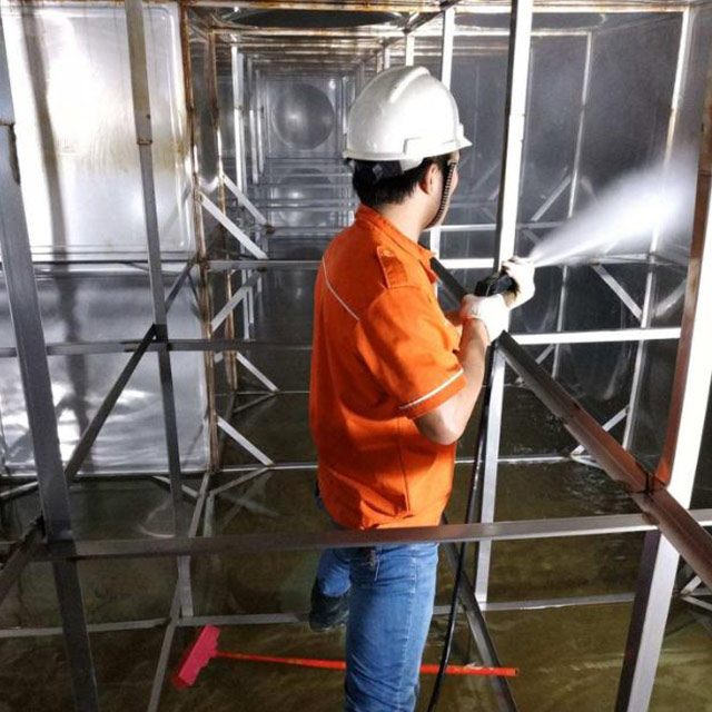 ![]() 一、目的 1.1保證供水清潔衛(wèi)生,符合泉州二次供水衛(wèi)生檢驗標準。 內容 3.1 每年對地下水池清洗一次,若遇特殊需要可增加清洗次數(shù)。清洗后,由專業(yè)清洗單位取水樣送區(qū)防疫站化驗取證,使水質達到國家衛(wèi)生飲用水的標準。 3.2 清洗工作由取得合格證的專業(yè)人員執(zhí)行,清洗人員健康合格證。 二、清洗前的準備工作。 3.3.1 清洗人員準備好所需的機電工具、清洗工具、消毒工具及消毒藥物。 3.3.2 根據(jù)清洗時間安排,報管理處主任審批停水時間。清洗前一周應出通告通知客戶停水時間,以便客戶做好貯水準備。 三、清洗程序 3.4.1 關閉進水總閥,關閉水箱之間的連通閥門,開啟泄水閥,排空水池、水箱中的水。 3.4.2 讓泄水閥門處于開啟位置,用鼓風機對著水池、水箱口吹風2小時以上,以便空氣流通,排除水池、水箱中的有毒氣體,吹進新鮮空氣。 3.4.3 清洗負責人招集清洗人員及檢修人員講解清洗程序、安全措施、技術要求以及安全注意事項。 3.4.4 把燃著的蠟燭放入池底,如不熄滅說明水池內不缺氧。 3.4.5 安裝36V行燈供水池、水箱內照明用。 3.4.6 清洗和檢查人員進入池內工作。 3.4.7 清洗人員刷洗六面體水池(箱)橫、豎各三遍,檢查人員對水池(箱)的管道及浮球、水位控制器進行檢查。 3.4.8 清洗完畢后排盡水池(箱)中的污水,再向水池(箱)內灑漂白精消毒。 3.4.9 半小時后,再次進入水池(箱)內沖洗,最后消毒三次后,清除池底污泥,用潛水泵抽出池中的積水。 3.4.10 在清洗水池的同時,另派人檢查、清理緊固閥門,清洗過濾網(wǎng)。 3.4.11 檢查各種設施正常后,注水入池,取水樣到市衛(wèi)生防疫檢測站化驗取證。 3.4.12 加蓋加鎖。 四、安全注意事項 3.5.1 使用安全電壓行燈,導線絕緣良好,并安裝漏電開關。 3.5.2 上、下水池應穿防滑鞋,傳送工具等物品應用繩子。 3.5.3 未經(jīng)試驗水池中有無氧氣前,不得進入水池。 3.5.4 消毒人員必須戴防護眼鏡和口罩。 五、消毒藥物配制方法 3.6.1消毒藥物配制方法(穩(wěn)定性二氧化氯配制)以消毒 1.0噸水箱為例需要配制3kg濃度為200PPM的消毒液;方法:用容器盛消毒劑原液80m1, 加活化劑 8克,搖動或攪拌使其溶解,5分鐘后呈淺黃色即可加入8kg清水中 稀釋待用。使用時將上述稀釋的消毒液噴灑在水箱內壁,使其濕潤。噴灑完后6分鐘即可注水使用。 3.6.2漂白粉配制的方法: (1)將漂白粉300克(或漂精粉150克)先加入少量水調成糊狀,然后加入水至10公斤,攪拌均勻加蓋,待沉淀后取上清液使用。 (2)使用劑量以每平方米200m上清液計算。 3.6.3水箱清洗消毒后能有效防止“五病”:即痢疾、傷寒、病毒性肝炎、活動期肺結核、化膿性或滲出性皮膚病以及其他有礙公共衛(wèi)生的疾病。 4.1 《水池清洗記錄表》 5水箱清洗質量標準 5.1非水箱自身的缺陷問題,清洗后應達到表面無污垢、底部無泥沙。 5.2非水源水質問題,清洗后水質達到上海市規(guī)定的生活飲用水標準。 6水箱清洗完畢后由甲、乙雙方對水箱清洗效果進行現(xiàn)場驗收,并填寫驗收單 |